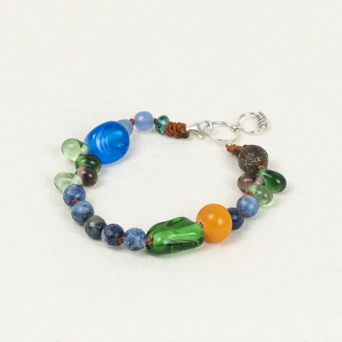 Ağırlıklı olarak ay taşı içeren bu tasarım, detaylarda mavi murano camları ve gümüş üzeri altın kaplama dorika boncuklardan oluşmaktadır. Kilit kısmında gümüş üzeri altın kaplama el işi ile üretilmiş balina ve uç kısmında gümüş üzeri altın kaplama deniz yıldızı sizleri karşılamaktadır. Her bir boncuk arasında iyi niyet barındıran düğümler mevcuttur. Bileklik ve kolye gibi çok amaçlı kullanım için uygundur.