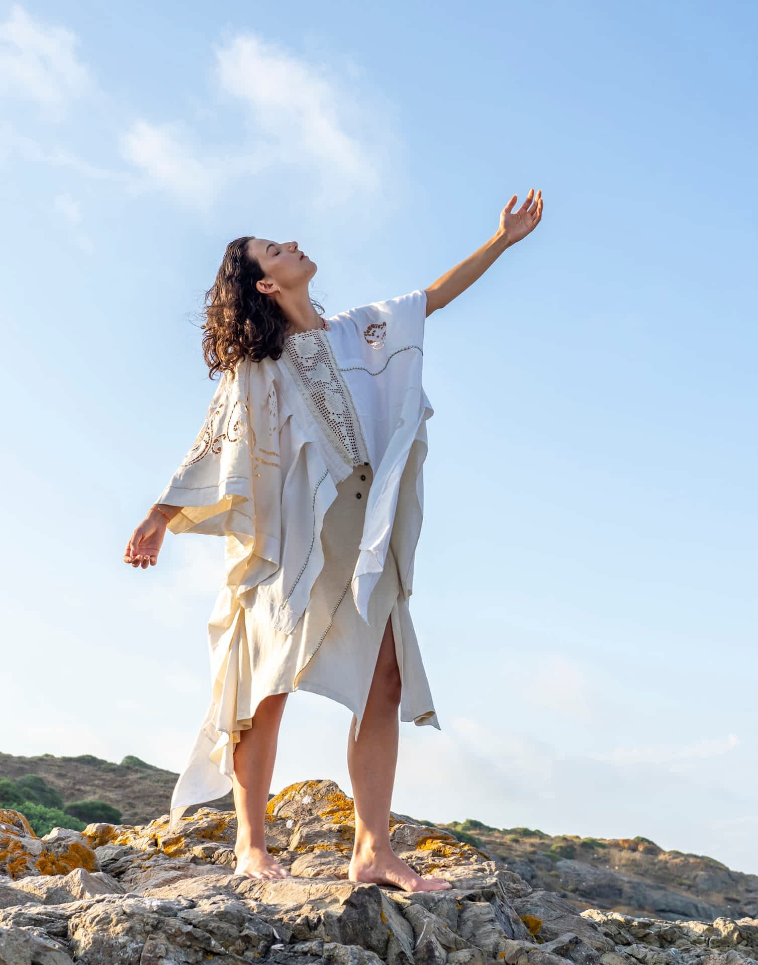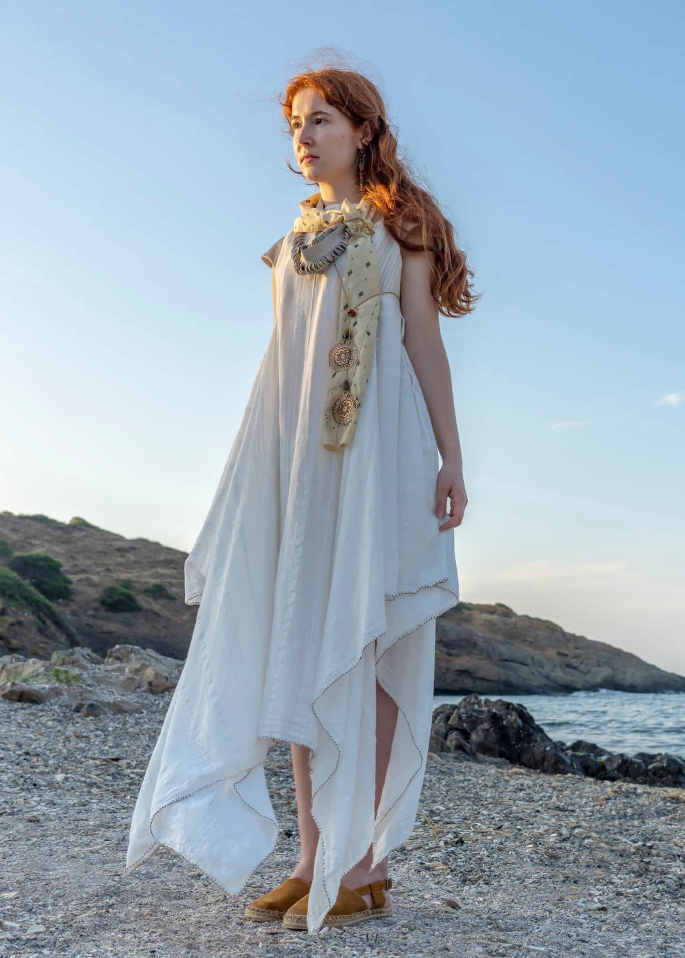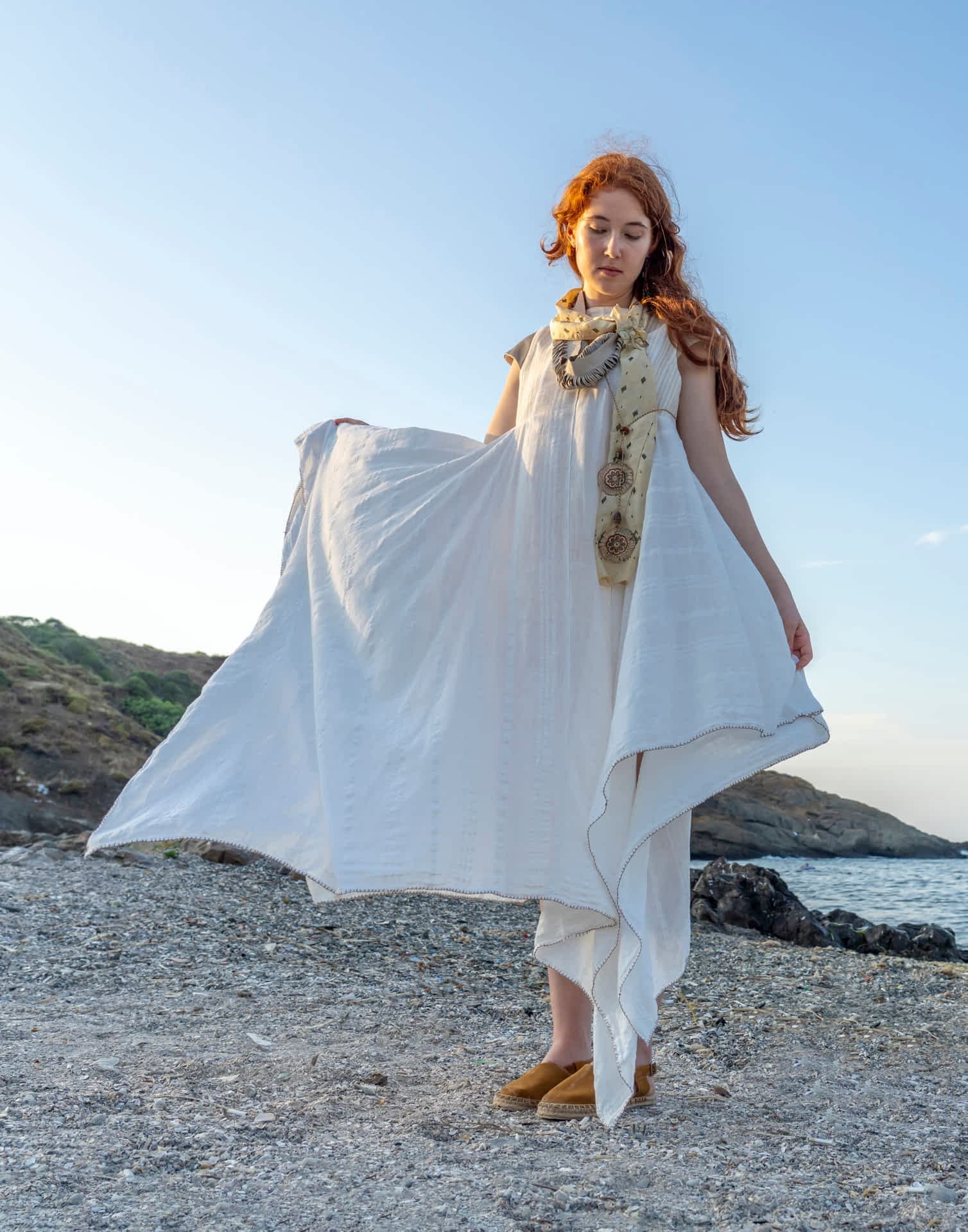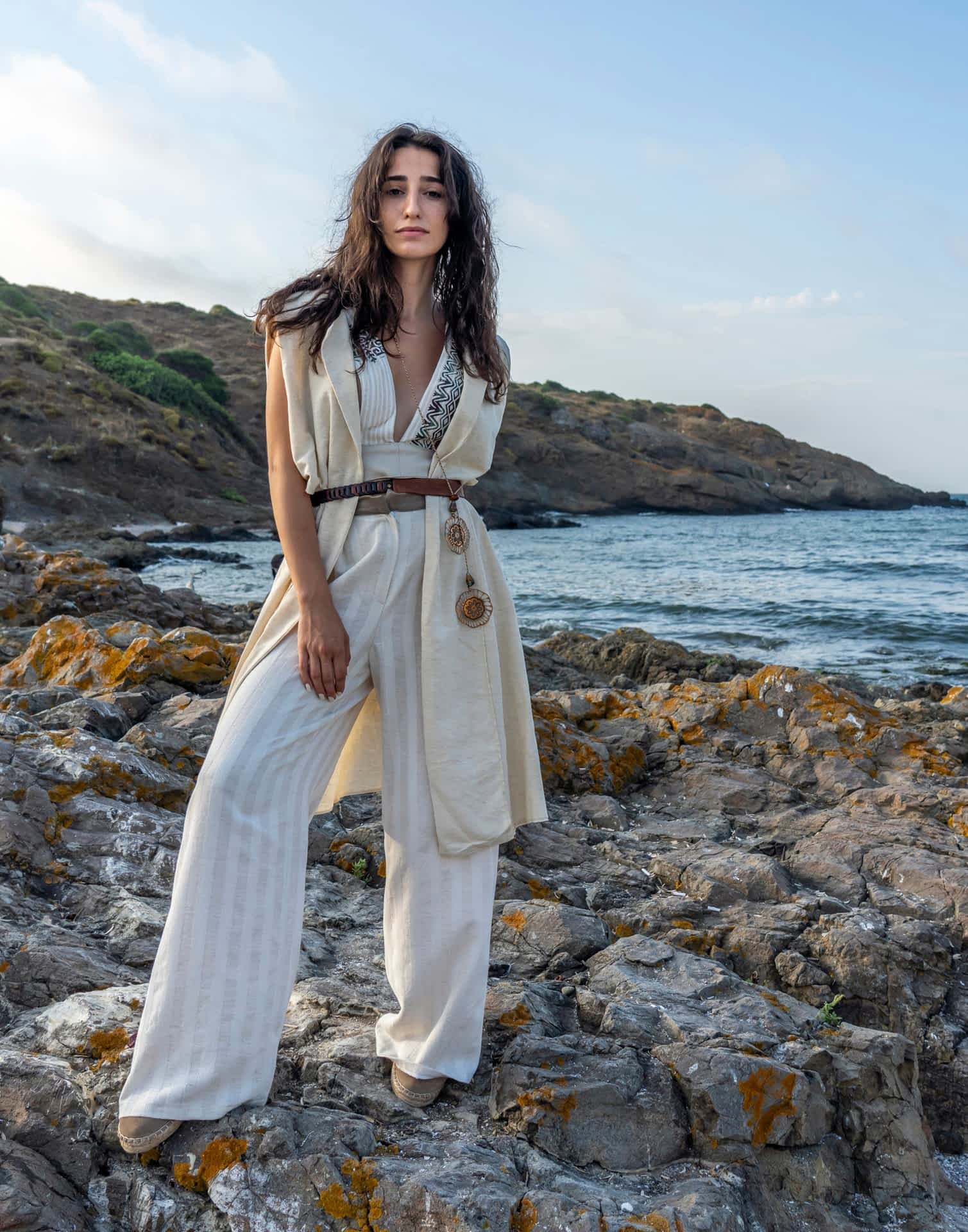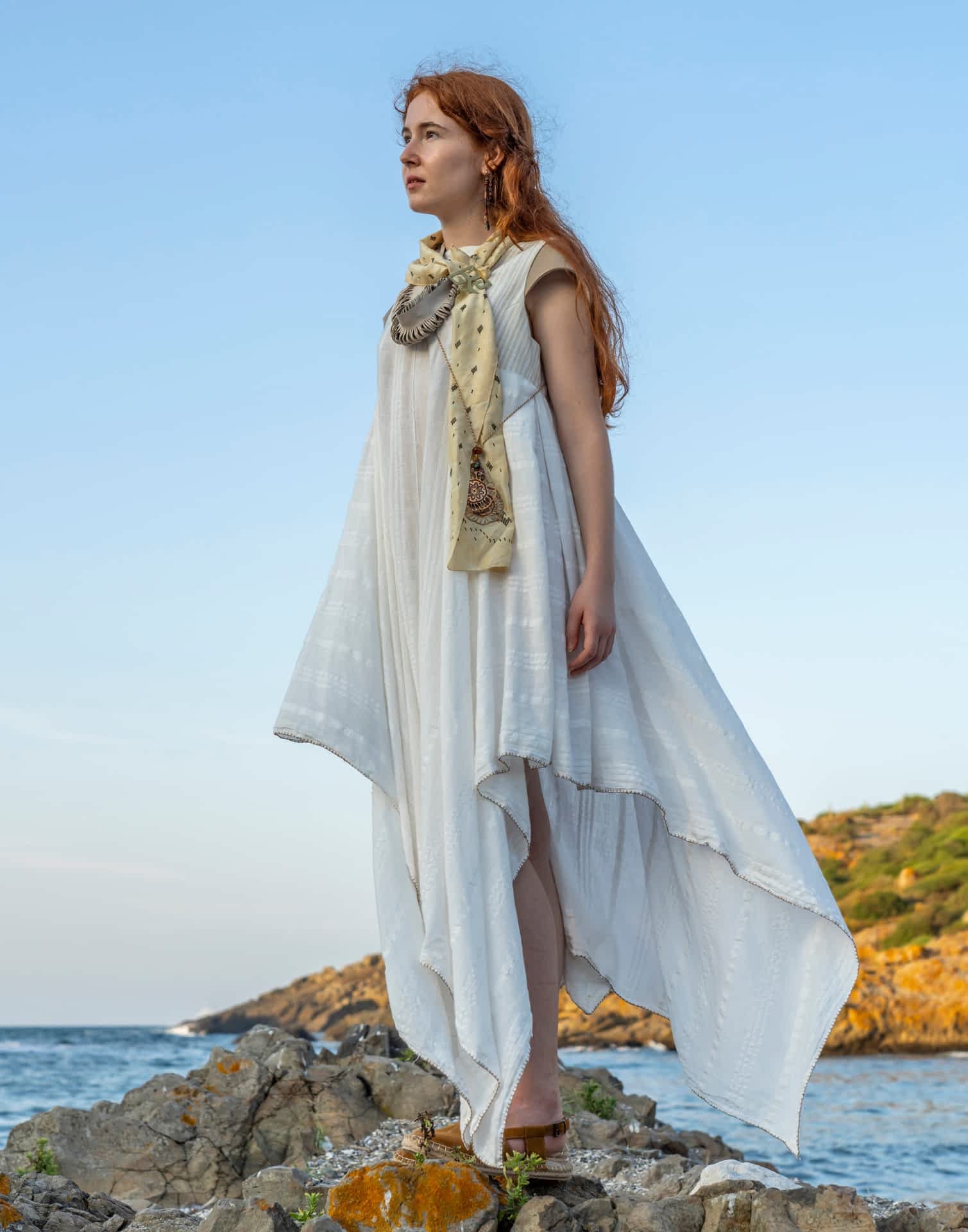 Yarattığım organik formlar, zanaat metodları ile harmanlanırken kullanılan materyaller Hatay’ın eşsiz altın sarısı ipeği, keten dokuması ve atık derilerden oluşmaktadır.